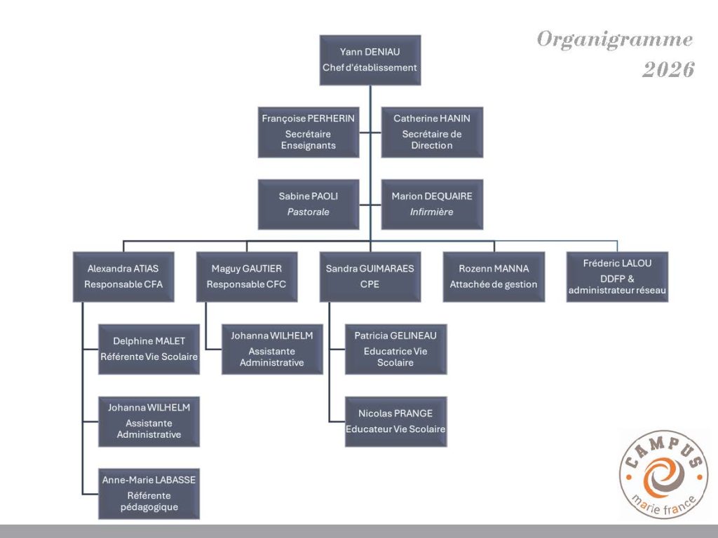 Animée par une équipe engagée et attentive, la pédagogie du Campus Marie France vise à révéler le potentiel de chacun, en tenant compte des aspirations, des talents et des besoins de chaque apprenant. Parce que la réussite ne se limite pas aux résultats scolaires, le campus place également l’épanouissement personnel, la confiance en soi et les valeurs humaines au cœur de son projet éducatif.